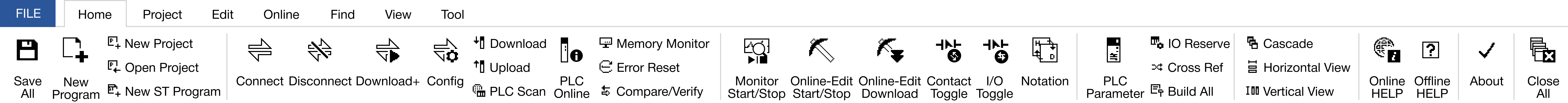 Compare/Verify | Compares and verifies the current project with the contents of the PLC. |