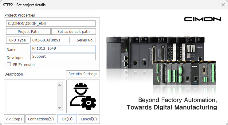 | C:\CIMON\CICON_ENG | Displays the path of the project's location. This is example is the default path. |