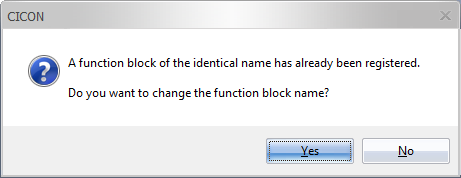 - If the same Function Block exists, left-click Yes to change the name.