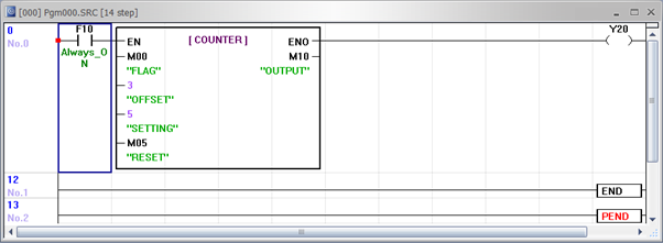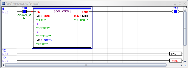 - If M0.0 is turned ON and OFF five times (with the OUTPUT activating on the 5th ON event), the output M1.0 will turn ON.