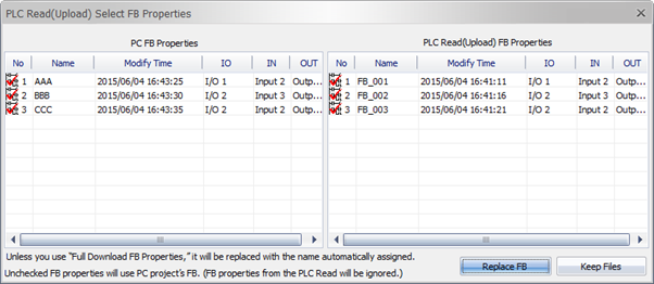 - If the timestamp is identical, the same Function Blocks are uploaded.