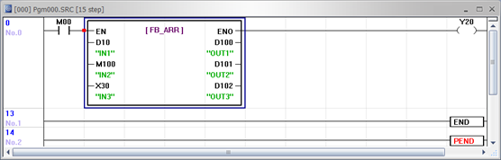 For example, if the BMOV instruction is used with the intention of transferring D10, D11, and D12 to D100, D101, and D102 in sequence, the output may not appear as expected. Instead, it could result in a mismatch due to the sequential addressing within the Function Block.