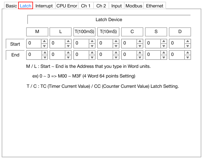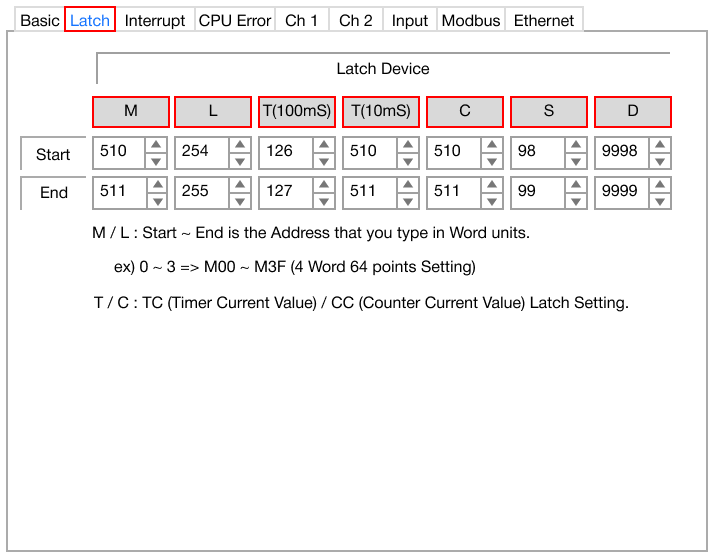 - To set the latch range, left-click a data register and specify the range.