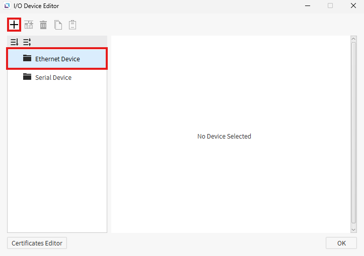 - Left-click the + (plus) icon to add a new I/O device.