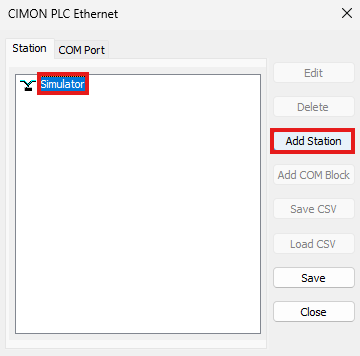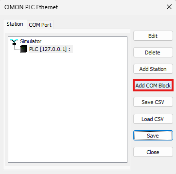 - Left-click Station and left-click Add COM Block.