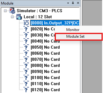 - To change the PLC input type, right-click in Module window and left-click Module Set.