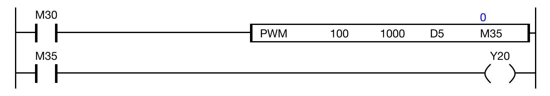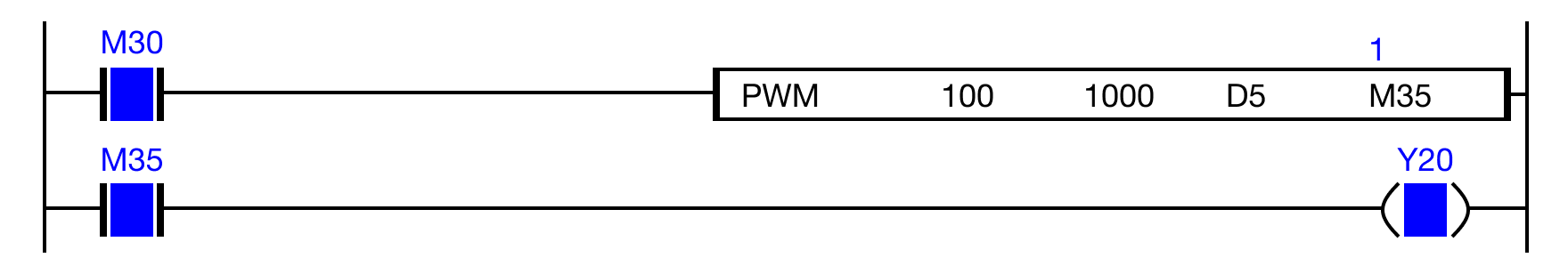 When the PWM operation is ON (1), the output device, M3.5, receives the pulses.