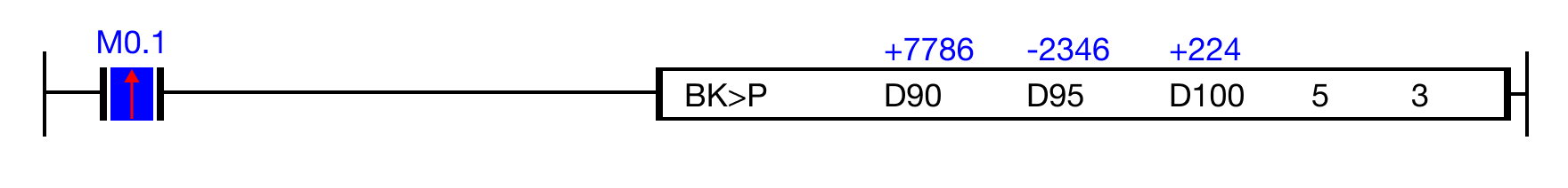 The BK> instruction compares n number of WORD data registers starting at S1 to n number of WORD data registers starting at S2.