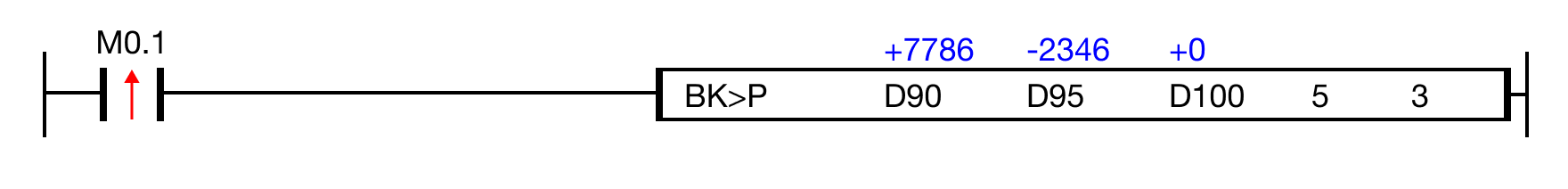 The BK>P instruction compares n number of WORD data registers starting at S1 to n number of WORD data registers starting at S2.