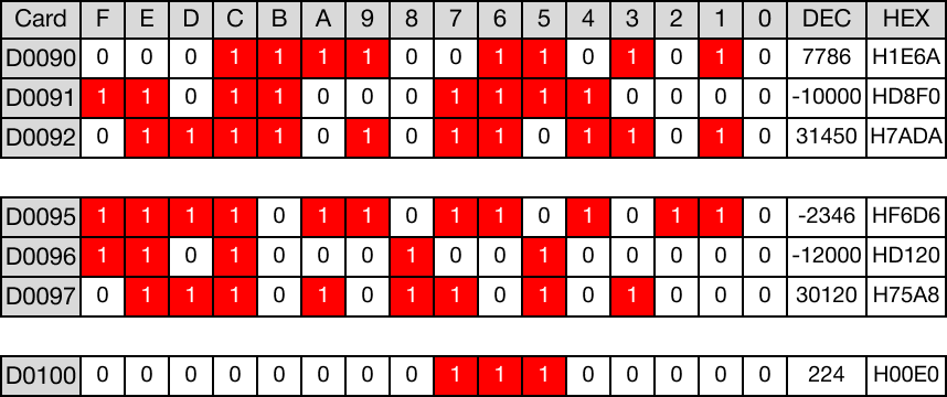 - When the open contact, M0.1, is powered ON (1), the values of the data registers are compared.