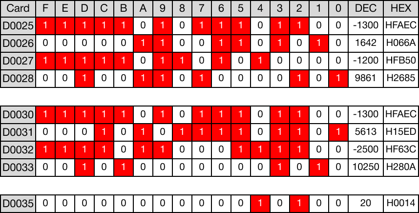- When the open contact, M0.1, is powered ON (1), the values of the data registers are compared.