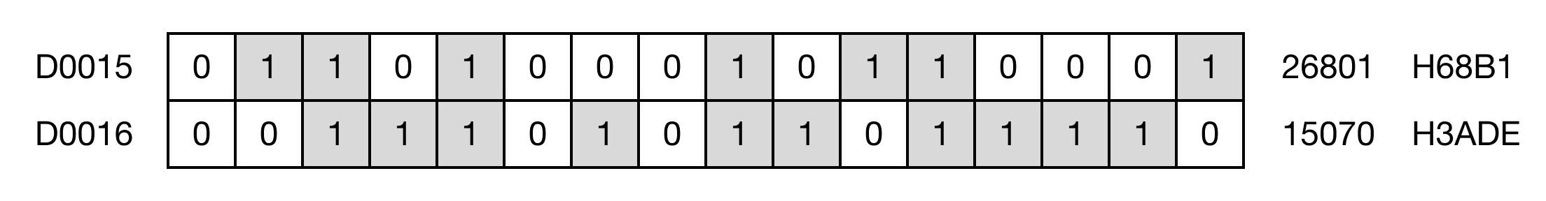 When the contact, M2.3 is ON (1), the instruction counts the set bits, all bits equal to 1, of the DWORD data register, D15.