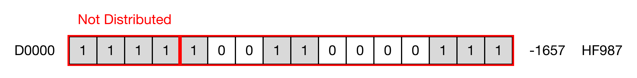 When the contact, M0.0 is ON (1), the instruction splits D0 into 4 NIBBLEs and distributes 3 the NIBBLEs to D2, D3, and D4.