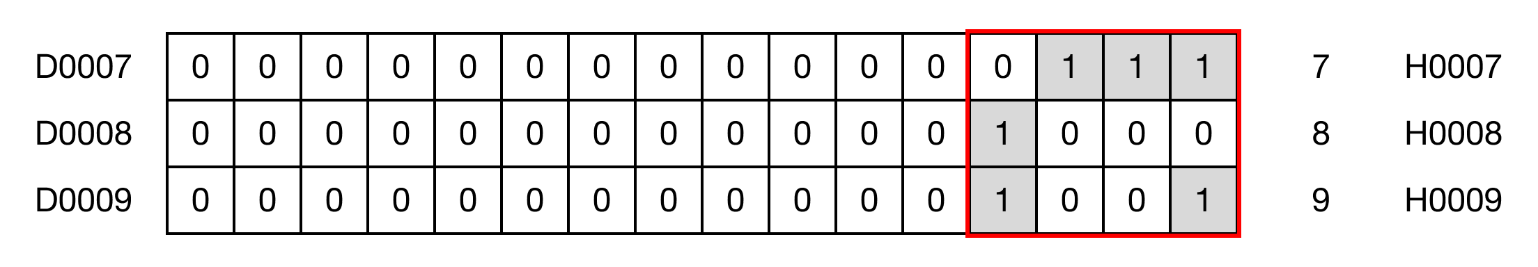When the contact, M0.1 is ON (1), the instruction splits D5 into 4 NIBBLEs and distributes 3 NIBBLEs to D7, D8, and D9.