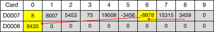The value of each data register, starting at D77, is shifted one data register to the left.