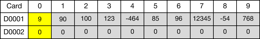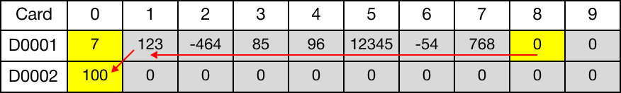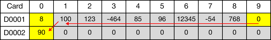 The last data register, corresponding to the value of the data register, D10, (D19) has the value set to 0.
