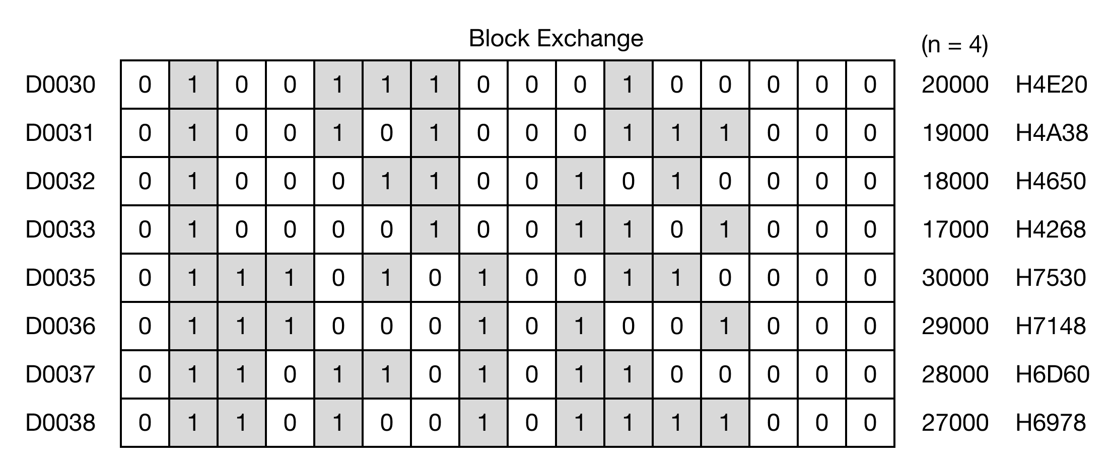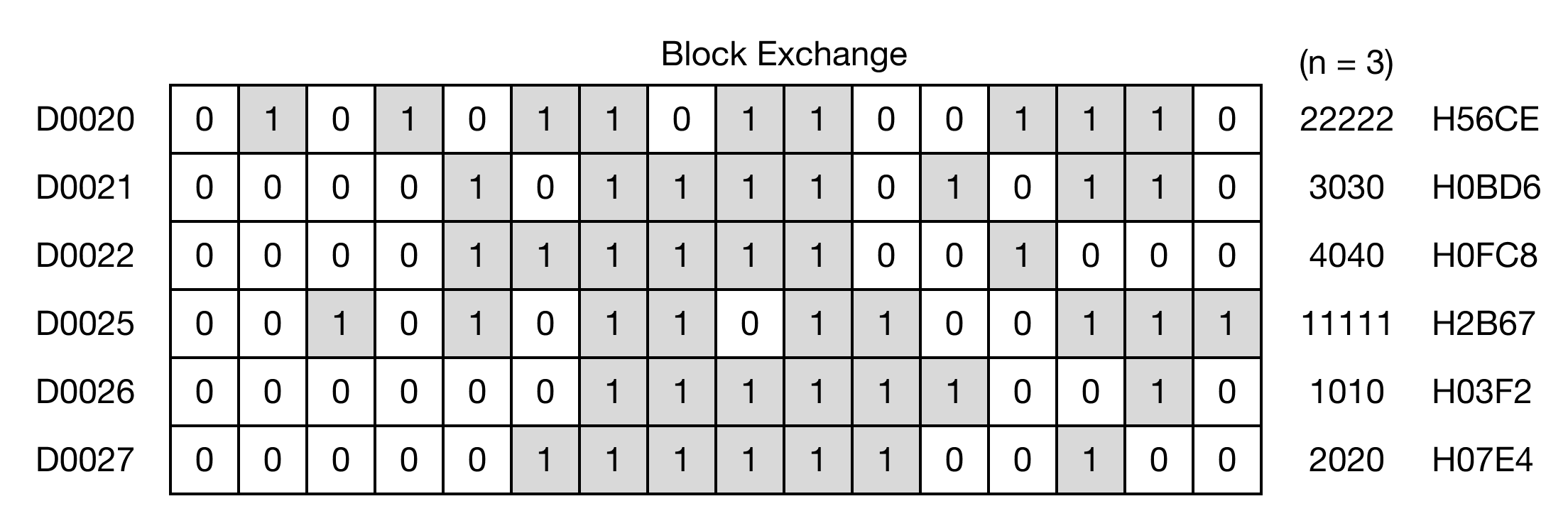 The BXCH instruction exchanges n number of WORD data registers starting at S with n number of WORD data registers starting at D.