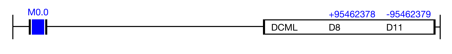 When the contact, M0.0, is powered ON (1), the instruction inverts the bits in the DWORD data register, D8, and saves the result in the data register, D11.