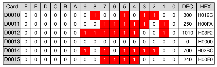 When the contact, M5.0, is powered ON (1), the data register, D14, is set to 700 and the data register, D15, is set to 240.