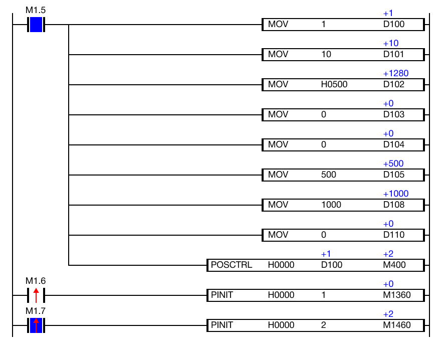 When the contact, M1.6 or M1.7, is powered ON (1), the PINIT instruction initializes the positioning data and/or parameters for flash memory.
