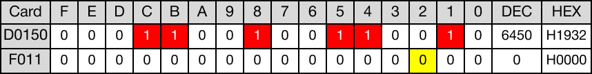 When the instruction is reenergized, the value of the WORD data register, D150, changes from -27,872 to 12,940.