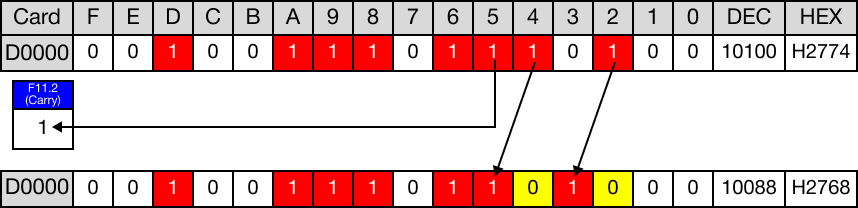 When the instruction is reenergized, the bits are shifted 1 bit to the left again.