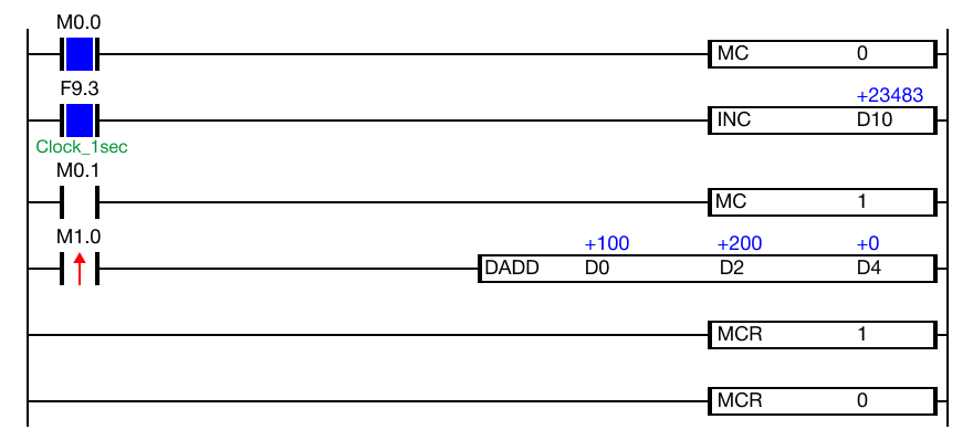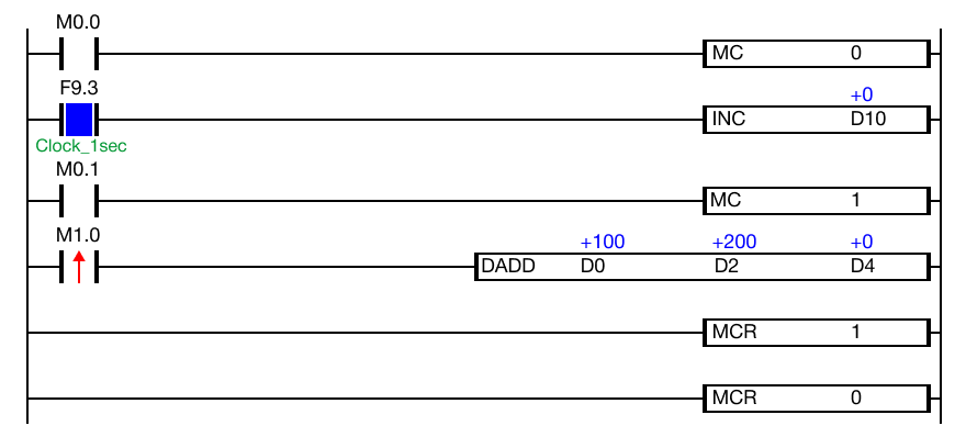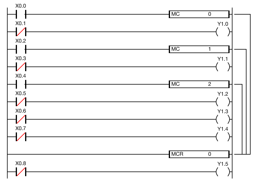 When the contact, M0.1, is OFF, MC 1 will NOT execute.