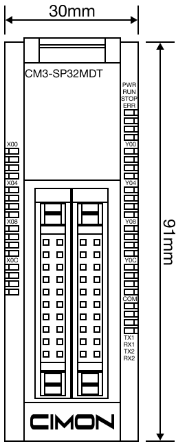 CM3 ModulesCPUMini ModularDimensionsOn this pagePLC-S Mini Modular CPU Series DimensionsCM3-SP16MDRF/CM3-SP16MDRV Front-Facing Side CM3-SP16MDTF Front-Facing Side CM3-SP16MDCF Front Side CM3-SP32MDTF-SD Front-Facing Side CM3-SP32MDCF-SD Front-Facing Side