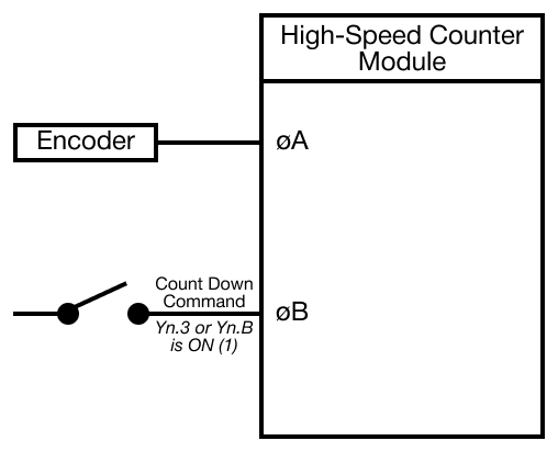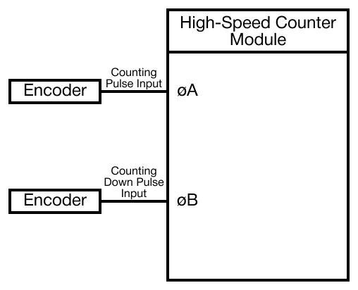 If there is a pulse in the A Phase, the module counts up. If there is a pulse in the B Phase, the module counts down.