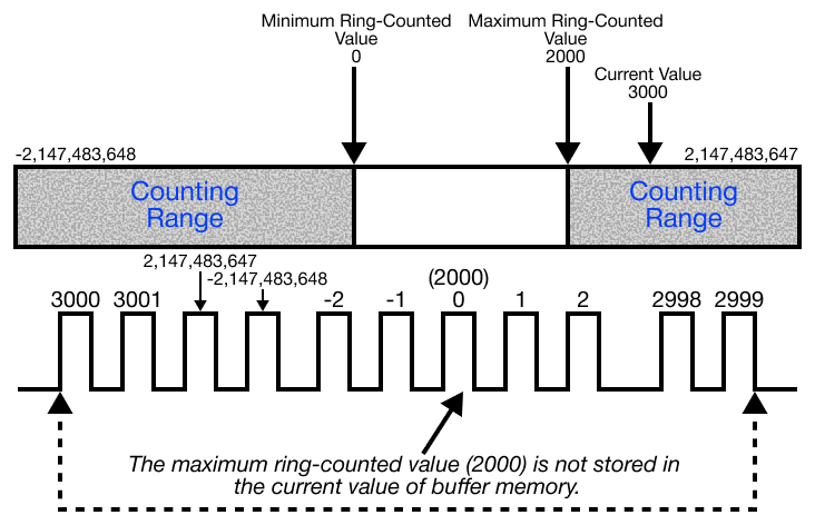 - Any value in the range -2,147,483,648 ~ 2,147,483,647 (232) can be ring-counted regardless of the current value.