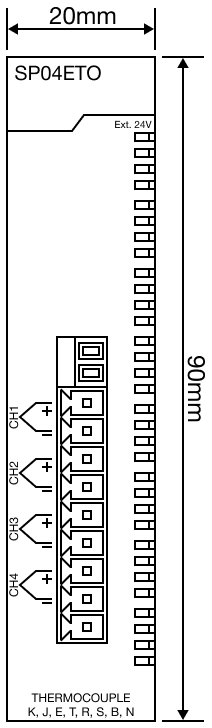CM3 ModulesTemeperatureTCDimensionsOn this pageCM3 Thermocouple Module DimensionsCM3-SP04ETO Front-Facing Side