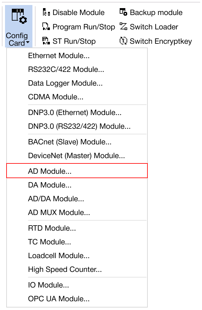 Navigate to Online → Special Module Setup → AD Module or click on the AD module within the Card Properties.