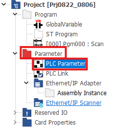 - Periodic interrupt program will appear in the PLC parameter. To open, left-click Parameter and left-click PLC Parameter.