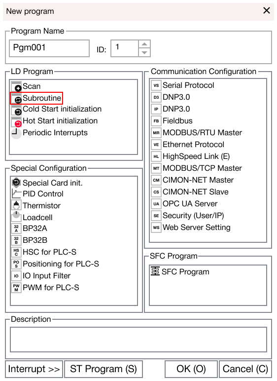 LD ProgramSubroutineOn this pageSubroutine ProgramSubroutine Program The subroutine program is a collection of programs that are called by the ECALL instruction in the scan program. The scan program calls the SBRT n ~ RET instructions in the subroutine program using the ECALL instruction.