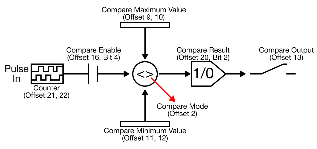 - The compare output flag (offset +20 or +45, bit 1) will be ON if the *compare output (offset +16 or +32, bit 4) is ON.