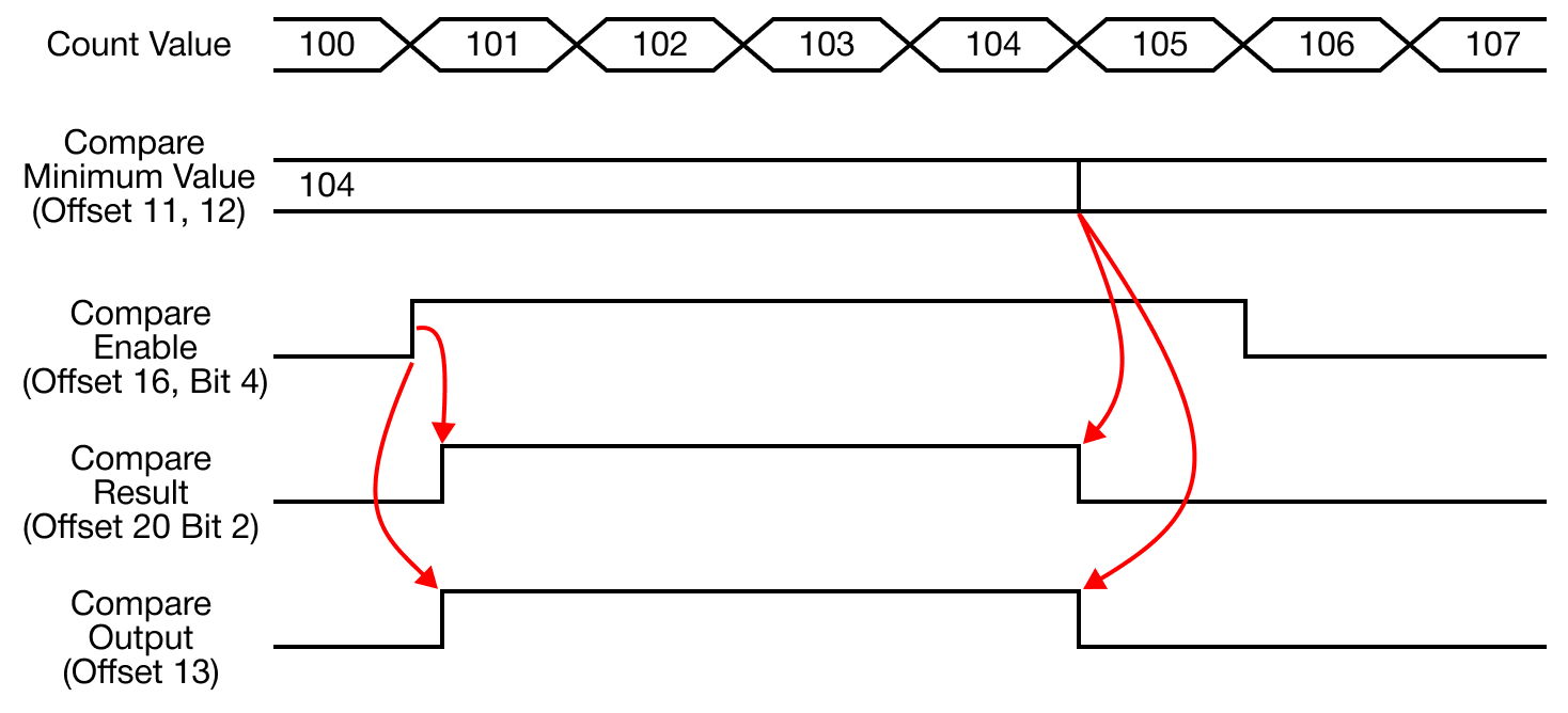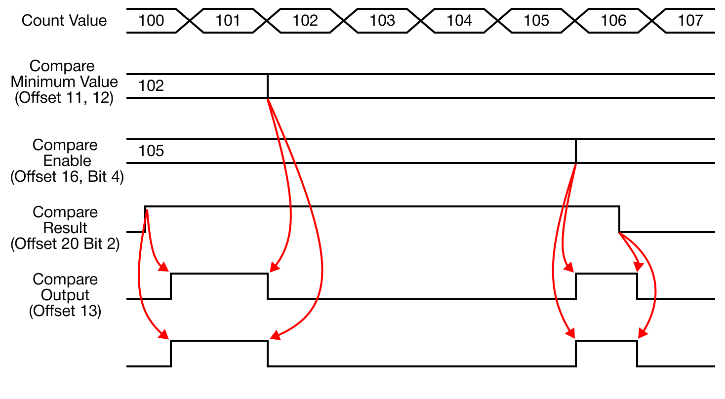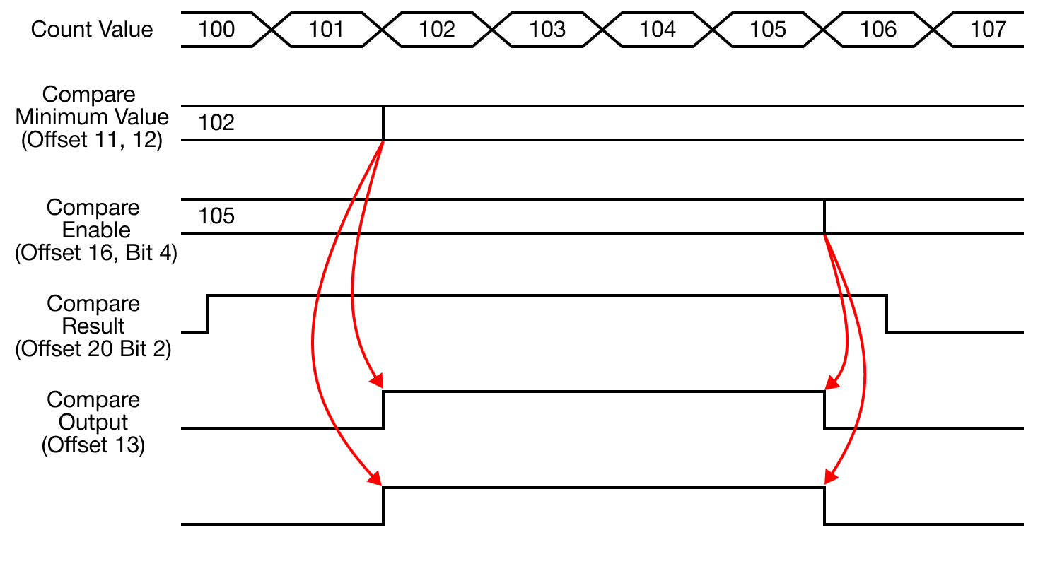 - The comparison operation with the currently-counted value is performed based on the configured comparison value.